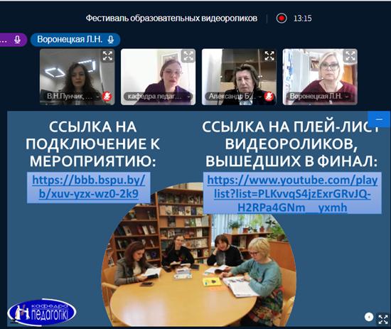 23 апреля 2021 года в рамках Декады студенческой науки в Белорусском государственном пдагогическом университете им. Максима Танка состоялся 4 Фестиваль образовательных видеороликов "Педагогические возможности информационных технологий". Его соорганизатором выступила кафедра молодежной политики и социокультурных коммуникаций РИВШ.
